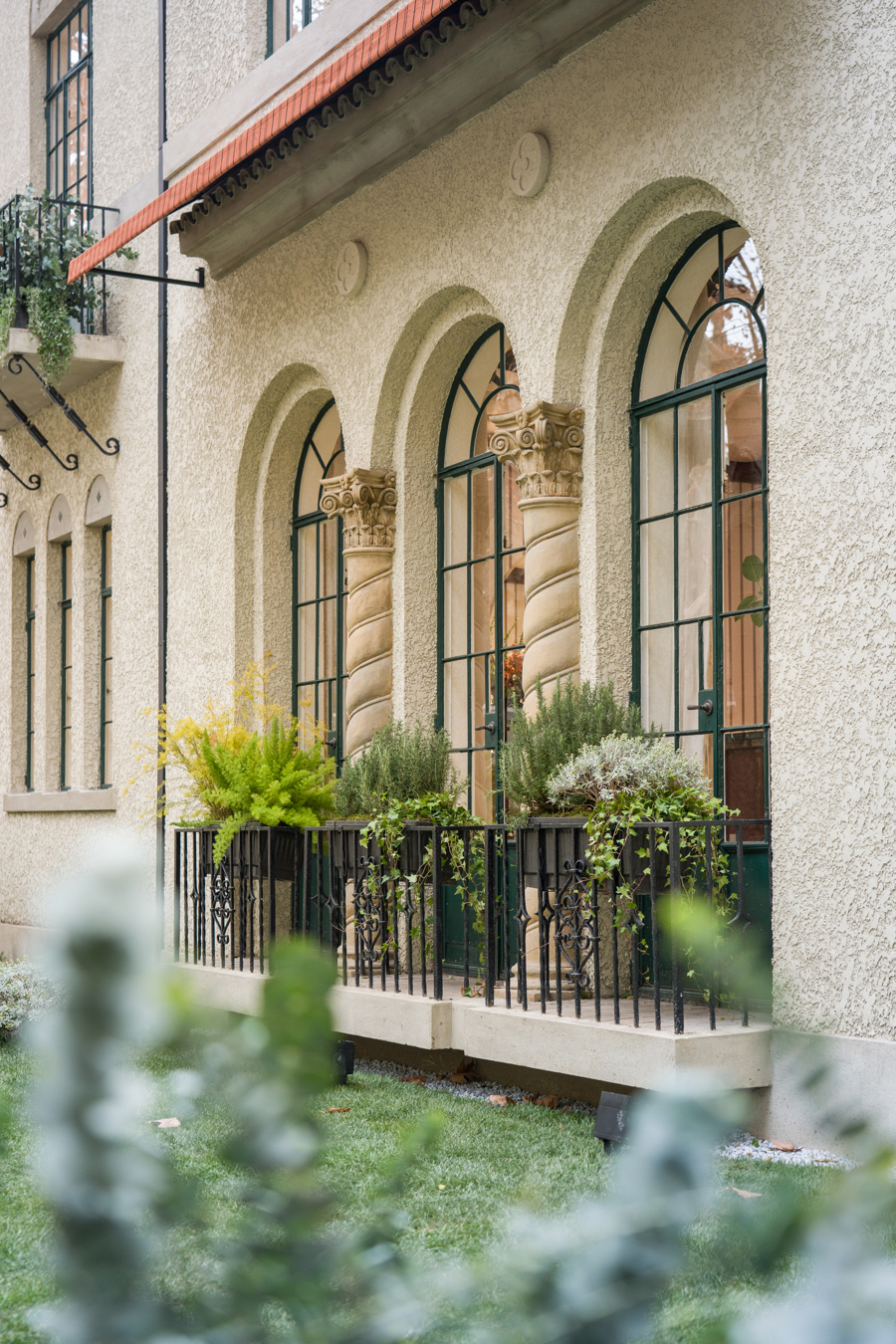 而今,老洋房进口处收复了畴前良好的建筑守密,还能看到螺旋柱与复合柱式的集会,以及两柱之间券门上的贝壳、卷涡和卷草登图案。建筑外立面罗致淡黄色拉毛科罚,屋顶的红瓦坡面与绿色的窗棂勾画出值得细细品尝的历史细节。