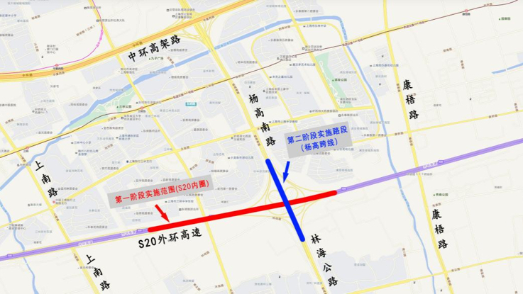 第二阶段践诺杨高南路跨S20跨线桥,长度1公里。盘算2月2日运转,2月23日(正月初七)完成。